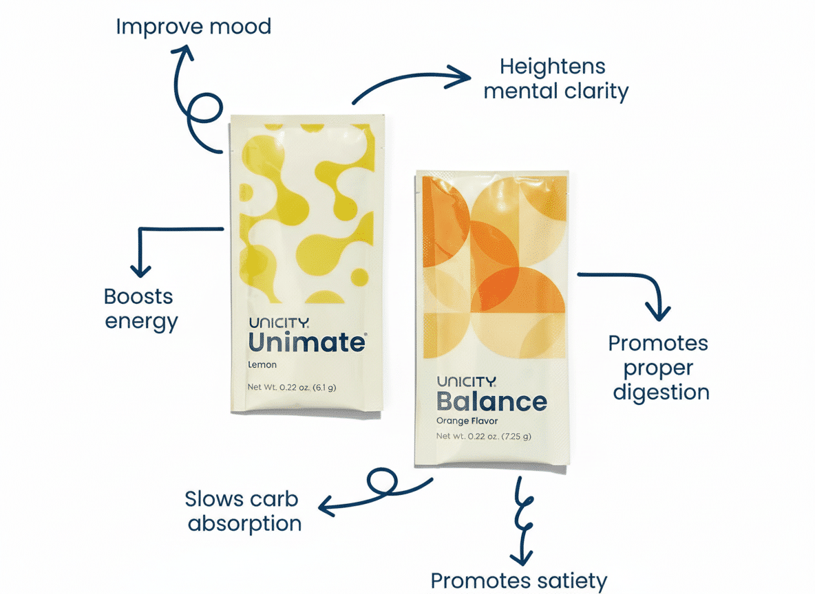 Unimat من Unicity هو مكمل غذائي ذو تركيبة متطورة تعتمد على الألياف الطبيعية المختارة بعناية. صُمم للمساعدة في تعزيز راحة الجهاز الهضمي، والتحكم في الشهية، ودعم استقرار طاقة الجسم بعد تناول الوجبات لنمط حياة أكثر توازناً.